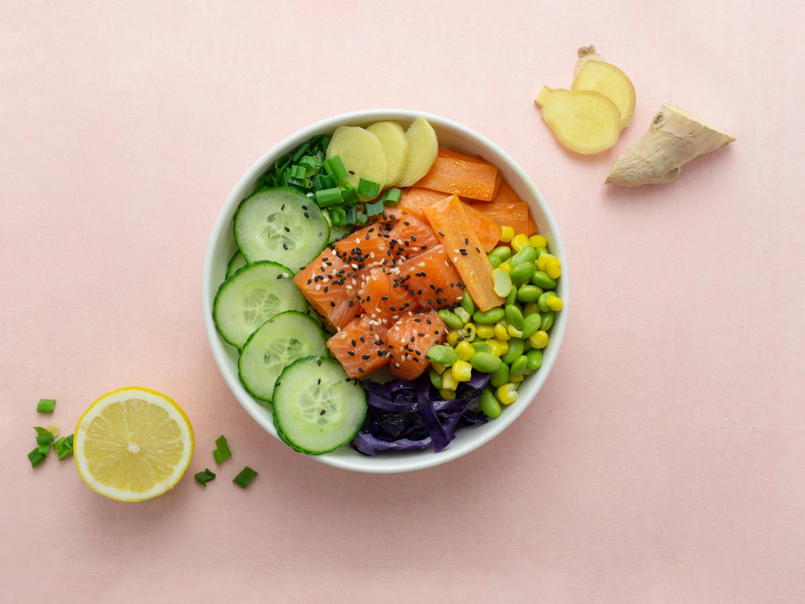 Protéines : saumon mariné, thon, poulet, tofu… (selon votre sélection)